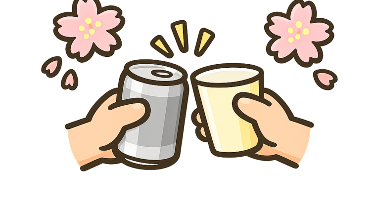 桜+乾杯している手
